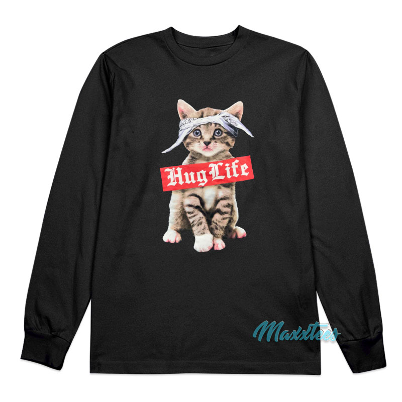 Hug Life Thug Life Gangster Rap Kitten Cat Long Sleeve Shirt